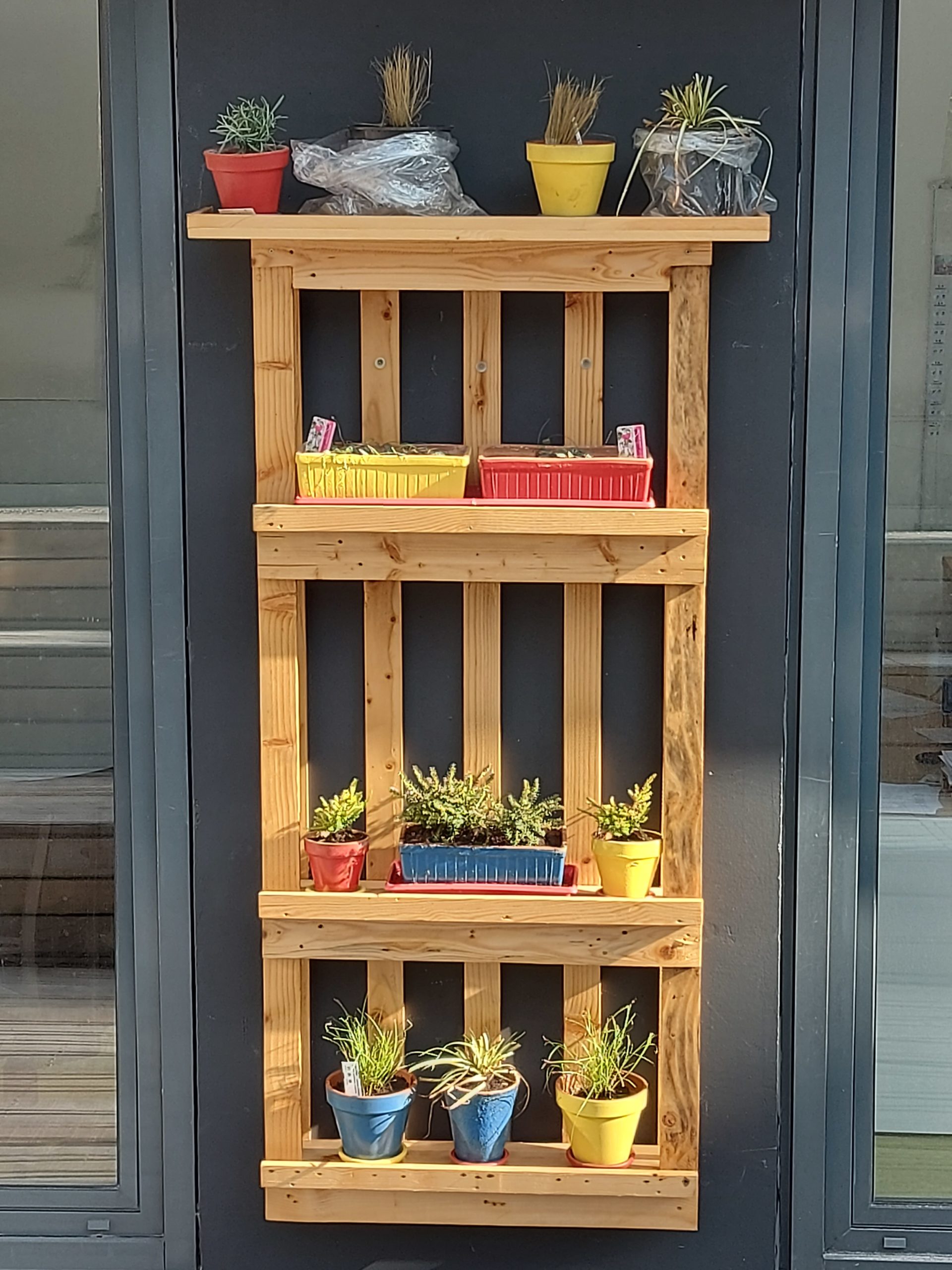 Nouveauté 2022 : Création d’un bureau professeur pour l’ouverture de la CPGE. Aménagement de la cour avec des assises en bois recyclé et des plantes.